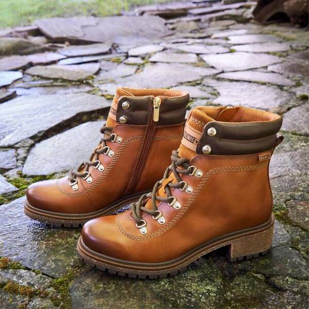 είδη υπόδησης JF8D277 κονιάκ γυναίκες Pikolinos aspe μποτάκια με κορδόνια