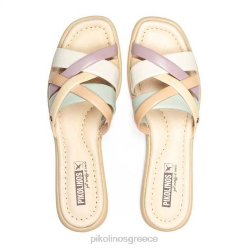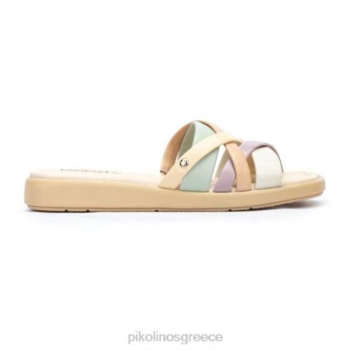 είδη υπόδησης JF8D8 nata-κρέμα γυναίκες Pikolinos σανδάλια calella flat slider με πολύχρωμες τιράντες