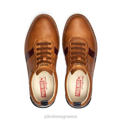 είδη υπόδησης JF8D904 κονιάκ άνδρες Pikolinos δερμάτινα παπούτσια navas με συνδυασμένα κορδόνια και λεπτομέρειες